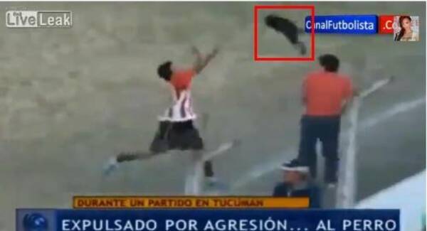 サッカー試合中に犬が乱入 首をつかんで外に投げるも失敗してフェンスに激突 ファンが激怒し大ブーイング後レッドカードで退場 13年6月12日 エキサイトニュース